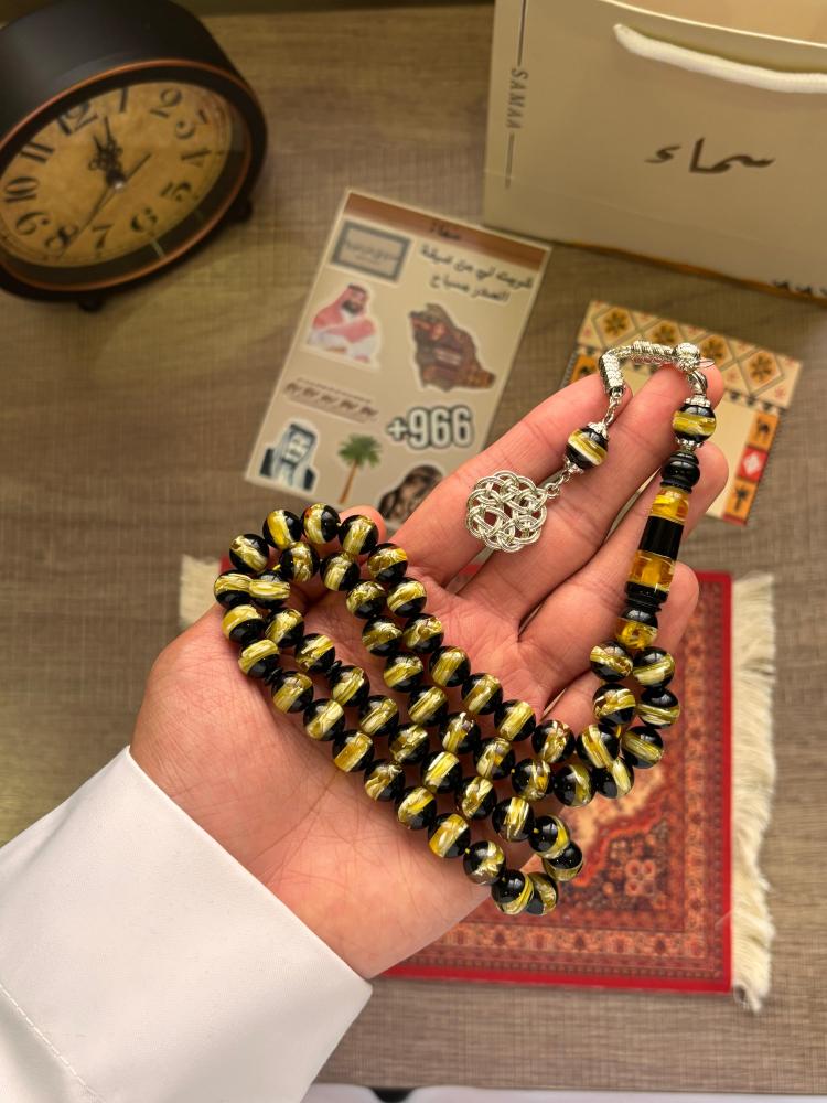 مسباح باللون الأسود مع الأصفر المميز: 📿🖤💛